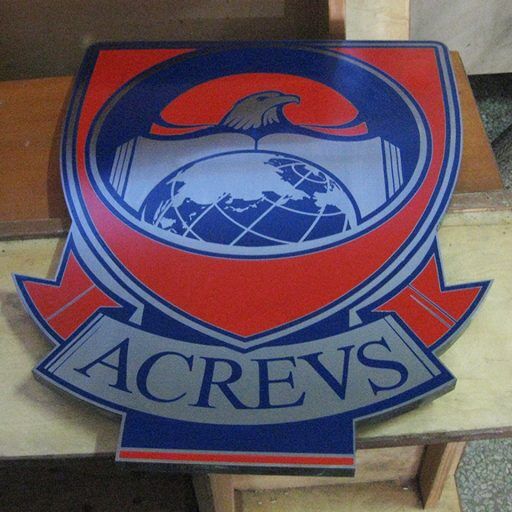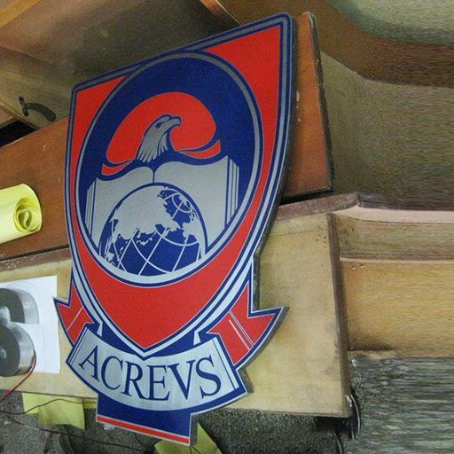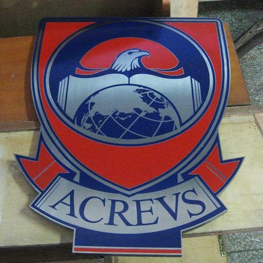 This Sign ACREVS is a plate sign in non-light flat cut with silk print stainless steel face and clear acrylic back base, sized in 15 inches tall by 25 inches wide.